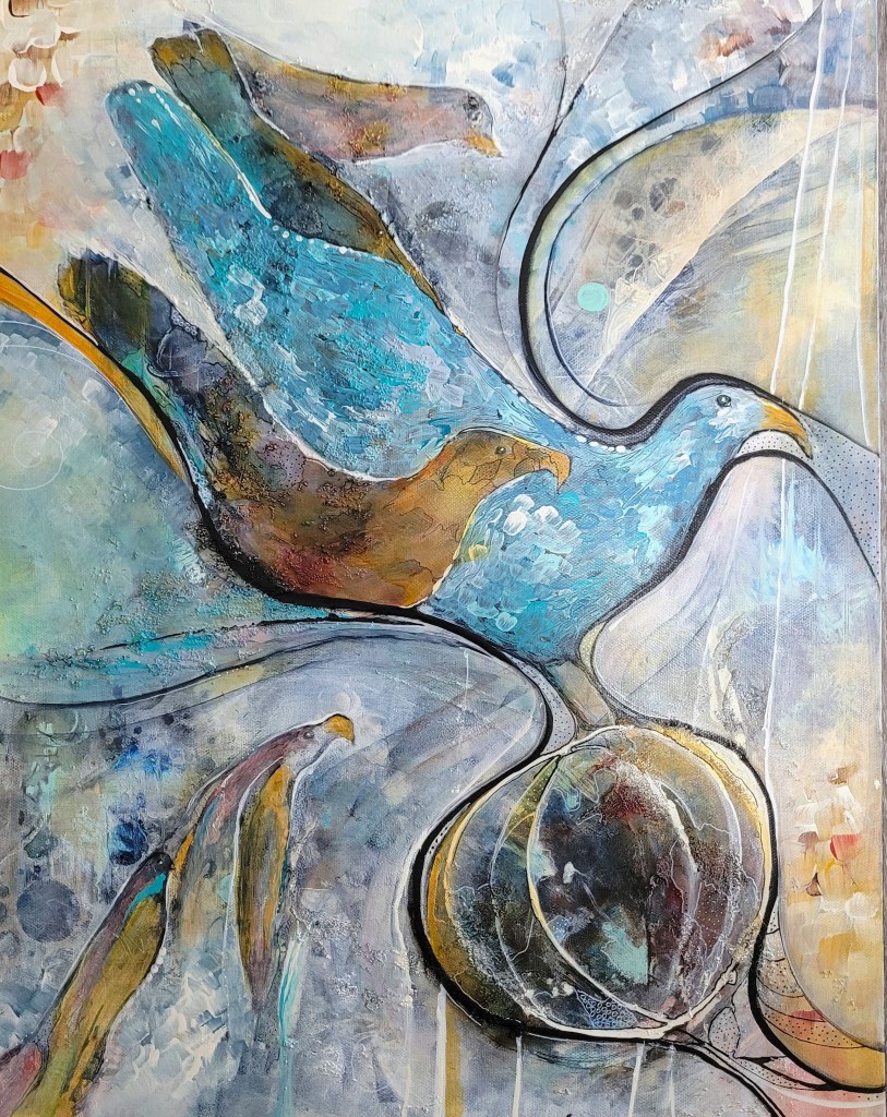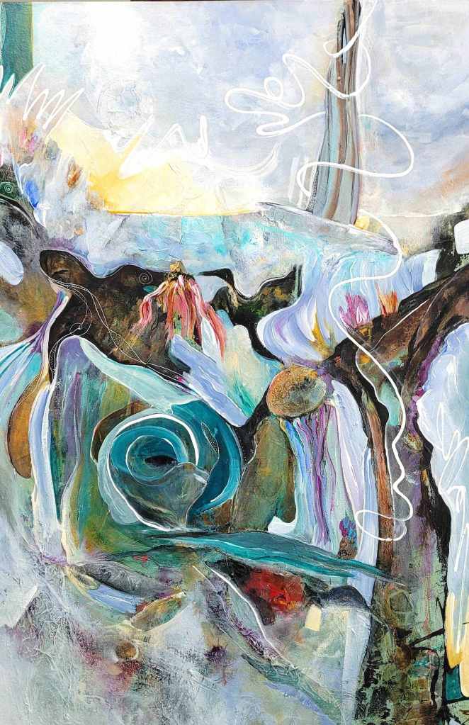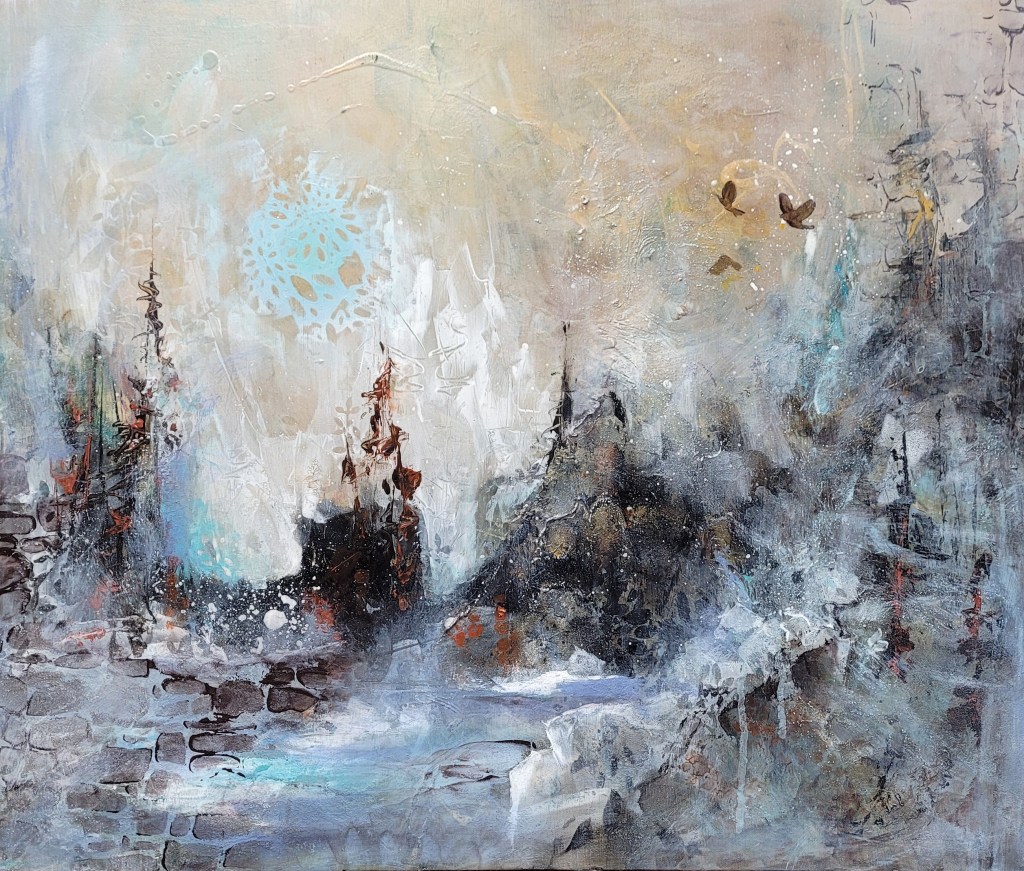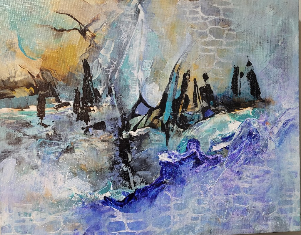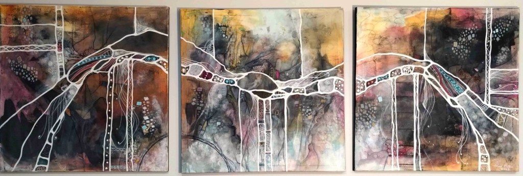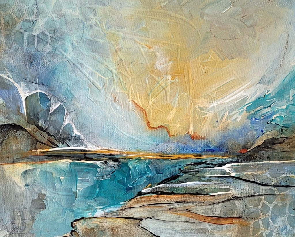 Abstracted, nature inspired paintings are designed to connect viewers with their love of the outdoors and encourage moments of reflection. They vary in themes. Listed below is a brief example of the type of paintings I create. To buy artwork for your home, or send a gift abroad see current pieces for sale by clicking on this LINK – these prices include shipping worldwide.