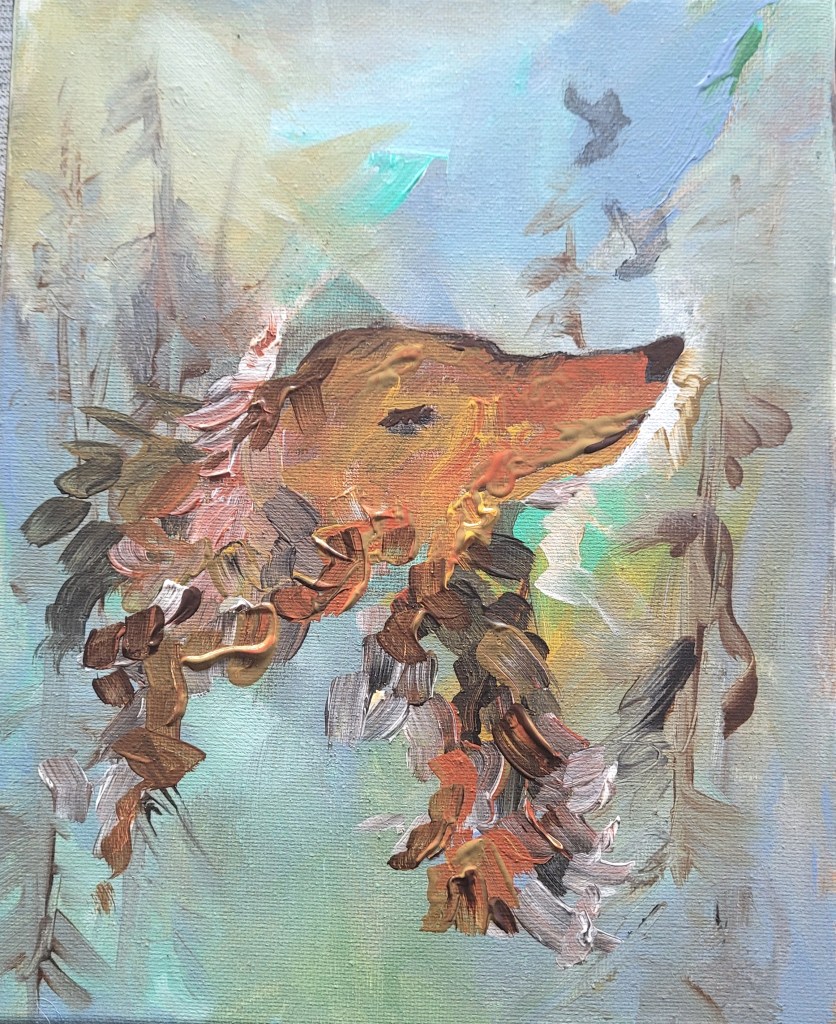 Many smaller gift sized paintings available (non-representational / floral / animals) – inquire for more information. Starting at $50 (6×6) + depending on complexity of the piece and size.