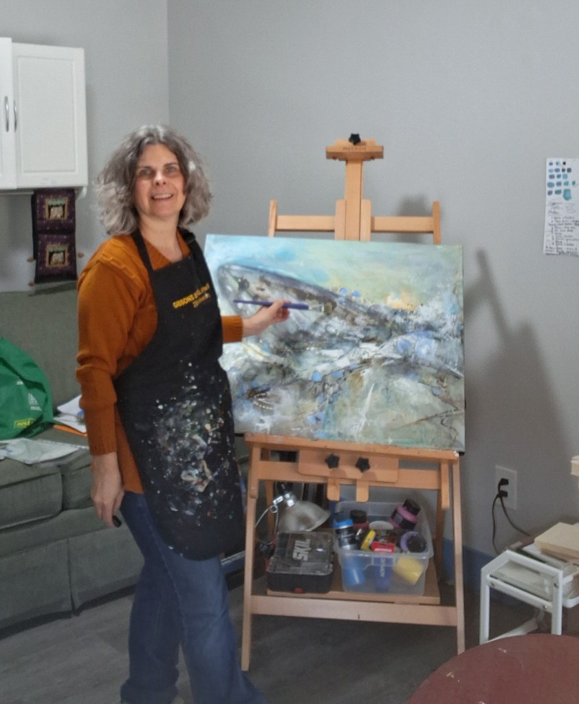 - Meet the artist + experience a working home studio tour on your next visit to Gibsons – Fri / Sat / Sun / Mon – by appointment only (whats a working home studio tour? – stop by, view my space / artwork + “ask the artist” about process, pieces, etc – a chance to meet the face behind the art)